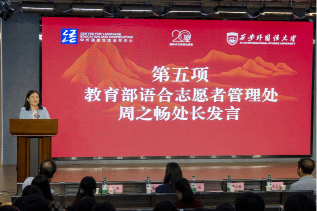 7月5日上午,由教育部中外语言交流合作中心主办、西安外国语大学承办的2024年第五期国际中文教育志愿者岗前培训结业仪式在我校雁塔校区举行。教育部语合中心志愿者管理处副处长周之畅、项目主管潘燕,我校国际合作与交流处处长景楠,汉学院党总支书记张锋、副院长(主持工作)庞晨光、副院长崔金明以及来自全国33所院校的92名参训学员参加了此次仪式。仪式由参训学员唐一凡和张杰玺主持。