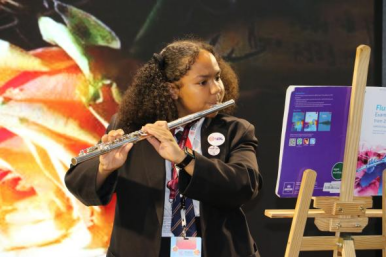最后,4所学校的营员呈现了精彩纷呈的表演。Becket Keys Church of England School全体同学表演了歌舞《爱你》,点燃了全场,现场一片沸腾。Kingsford Community School的Anisa带来个人长笛独奏,恬淡舒缓,悠扬抒情,引人入胜。Pates Grammar School的Rosemary Barron带来婀娜多姿的独舞表演,Olly Hale 带来炫酷的后空翻表演,引来一阵阵尖叫,随后所有营员合唱了《十二生肖》。Wilmington Grammar School for Girls的学生们带来了歌舞串烧,他们激情四射,活力满满,将快乐传递给现场所有人。中方小朋友杨迪、杨芷兄妹分别带来巴扬独奏《野蜂飞舞》与《花儿与少年》,轻快欢愉的节奏,清晰流畅的旋律,将现场气氛推向高潮。