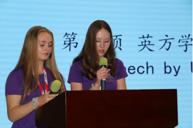 Anglo European School学生代表Goda Paulaskaite与Ana Kolomeyko、Becket Keys Church of England School学生代表Poppy Moorey与Ava Tomlin 、Kingsford Community School学生代表Gabriela Sologub、Wilmington Grammar School for Girls学生代表Anscombe Poppy分别上台发言,都表达了对语合中心、英国文化教育协会以及我校的感谢,希望能有更多的学生拥有这样珍贵的机会来亲身体验中国文化的无限魅力,感受千年古都的深厚底蕴,品尝西安美食的独特味道。