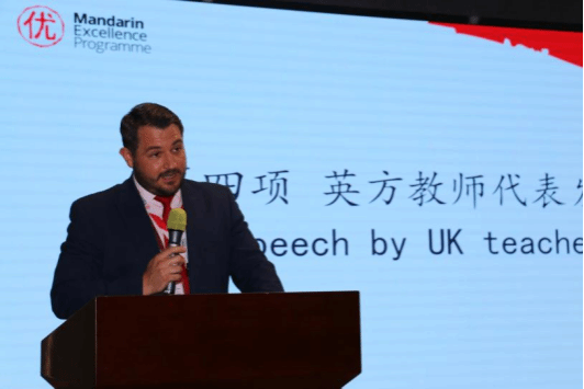 Chris Butland在致辞中感谢语合中心、西安外国语大学和英国文化教育协会的支持与组织。他引用“书山有路勤为径,学海无涯苦作舟”激励营员不懈地追求卓越,表示他们不仅仅是学习普通话的学生,更是中英文化交流的大使,在此过程中建立的友谊、获得的知识将推动他们继续探索,期待看到他们因“中文培优”项目而开辟的美好道路。