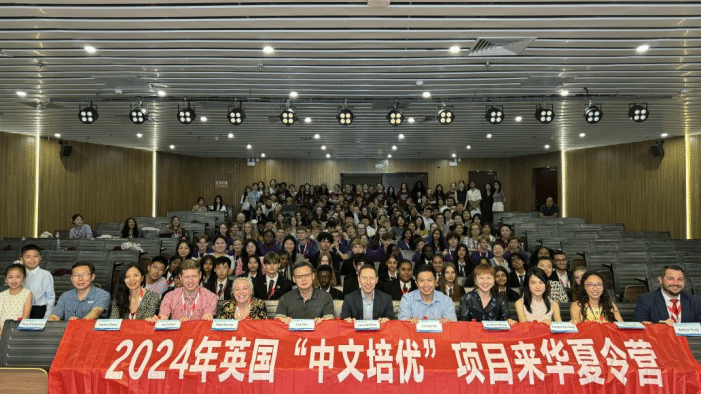 7月15日晚,2024年英国“中文培优”来华夏令营结营仪式于我校雁塔校区2号教学楼报告厅顺利举行。英国大使馆中国北方地区合作处主管Chris Butland、英国大使馆文化教育处中国区教育主任胡雪彬、英国大使馆区域合作高级官员王佳晨、英国大使馆文化教育处项目协调员蒋雍雍、Anglo European School校长助理Steph Nichols、Becket Keys Church of England School中文系主任Rebecca Lin、Kingsford Community School校长助理Matthew Young、Pates Grammar School中文系主任Zhang Xiaohui、Wilmington Grammar School for Girls校长助理和外语系主任Jim Dufton、我校国际合作与交流处处长景楠、汉学院副院长(主持工作)庞晨光以及来自英方5所学校的130余名师生与项目相关参与人员共同出席了结营仪式。