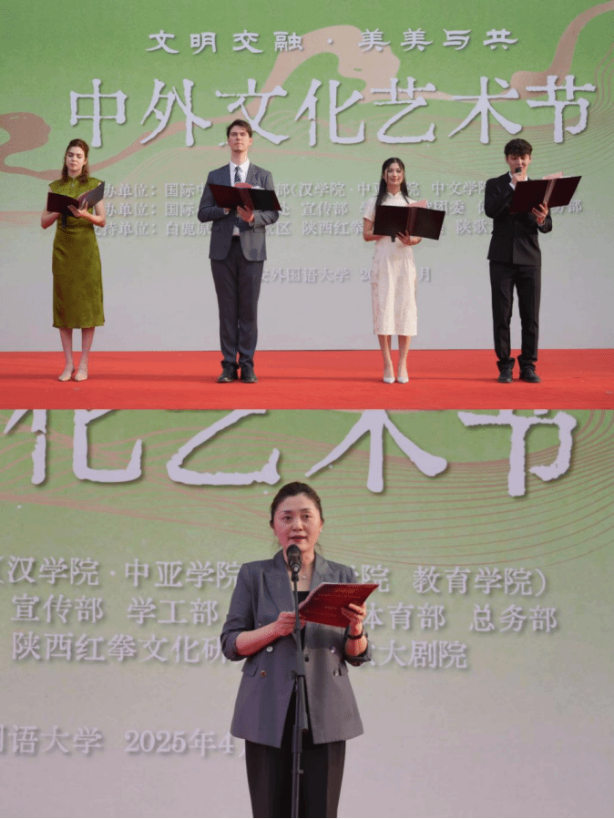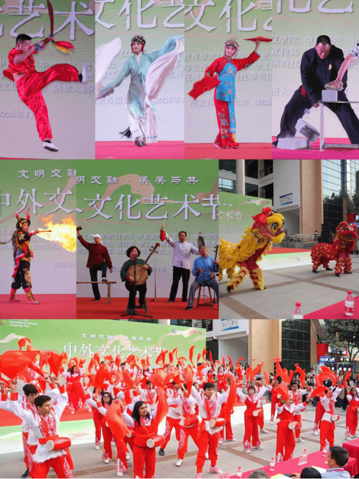 活动在激昂的舞狮表演中拉开帷幕,白鹿原影视城的金狮腾跃点燃全场热情。随后,巴西留学生带来的安塞腰鼓以“跨洋混搭”的创意,将桑巴的热烈与陕北豪迈完美融合。来自哈萨克斯坦的金森成深情献唱《我想这是爱情》,俄罗斯学生演绎欢快舞蹈《Kalinka》,塔吉克斯坦的米娜等人则以中国传统舞蹈《踏歌》展现东方婉约之美。非遗传承人刘彬的川剧变脸、陕西歌舞大剧院的秦腔绝技、法国学生的现代舞《Chk chk boom》、通识教育学院·体育部组织的老中青少红拳展演等节目轮番登场,彰显了传统与现代、东方与西方的交融共生。
