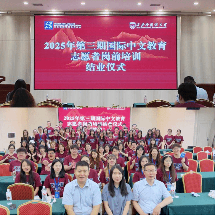 6月20日上午,教育部中外语言交流合作中心主办、西安外国语大学承办的2025年第三期国际中文教育志愿者岗前培训结业仪式在陕西妇女儿童活动中心报告厅举行。教育部语合中心志愿者处项目官员孙颖、西安外国语大学汉学院·中亚学院党总支书记吴崔鹏、院长庞晨光等相关人员及来自全国31所院校的92名志愿者参会。仪式由汉学院党总支副书记李仲秋主持。