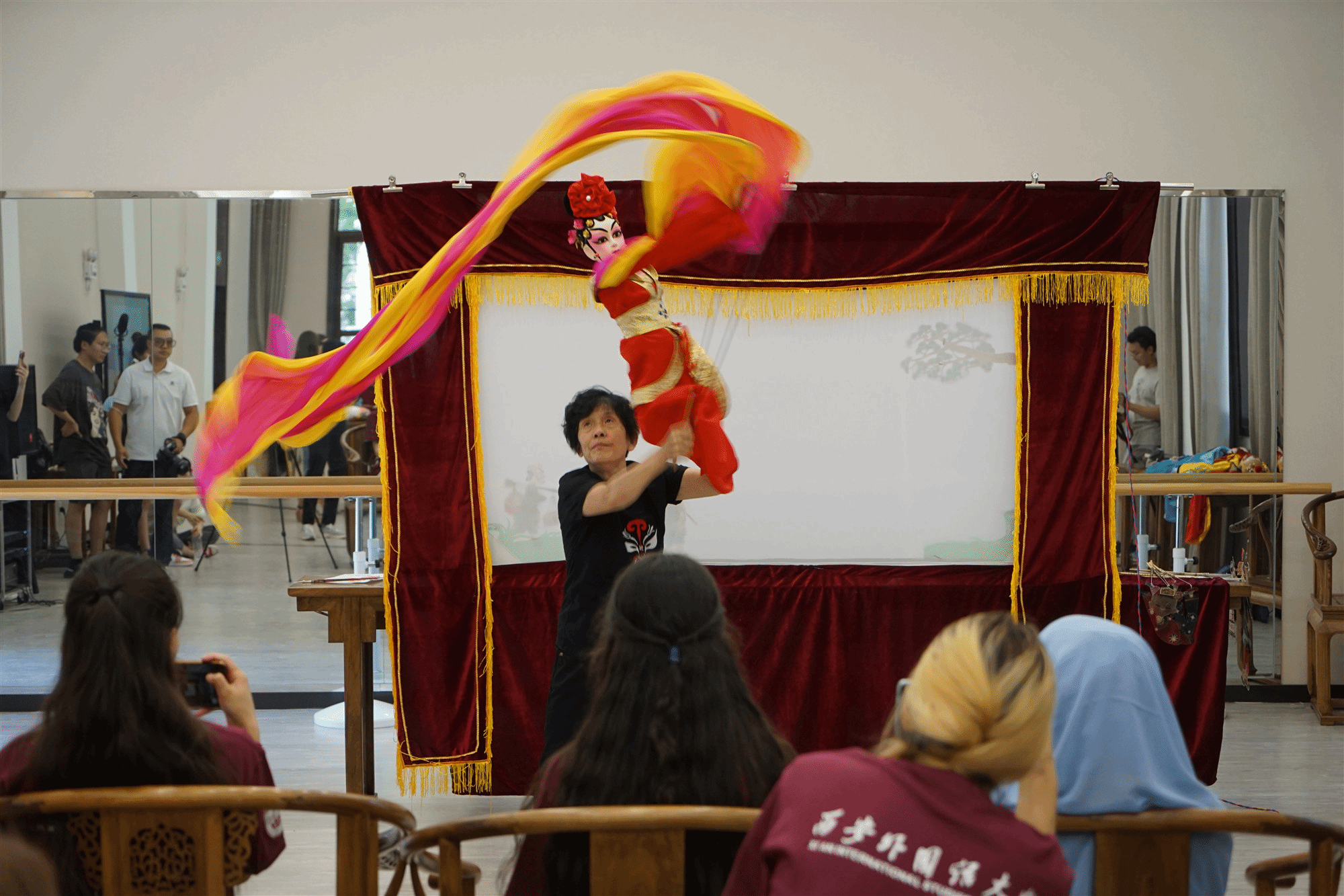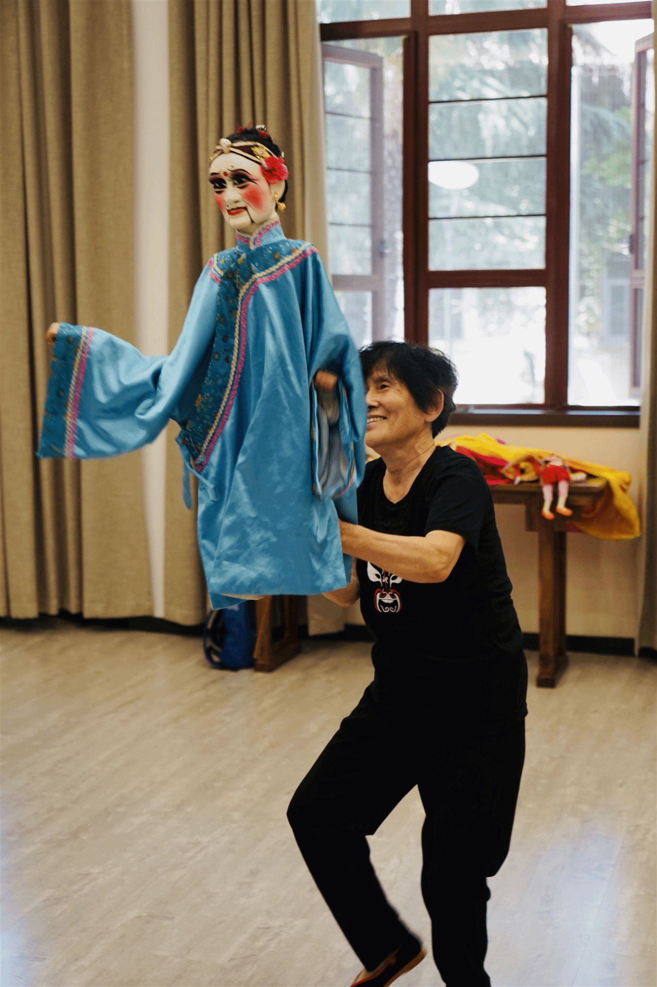 木偶戏 是用木偶来表演故事的戏剧,距今已三千多年,是中国国家级非物质文化遗产之一。表演时,演员在幕后一边操纵木偶,一边演唱,并配以音乐。