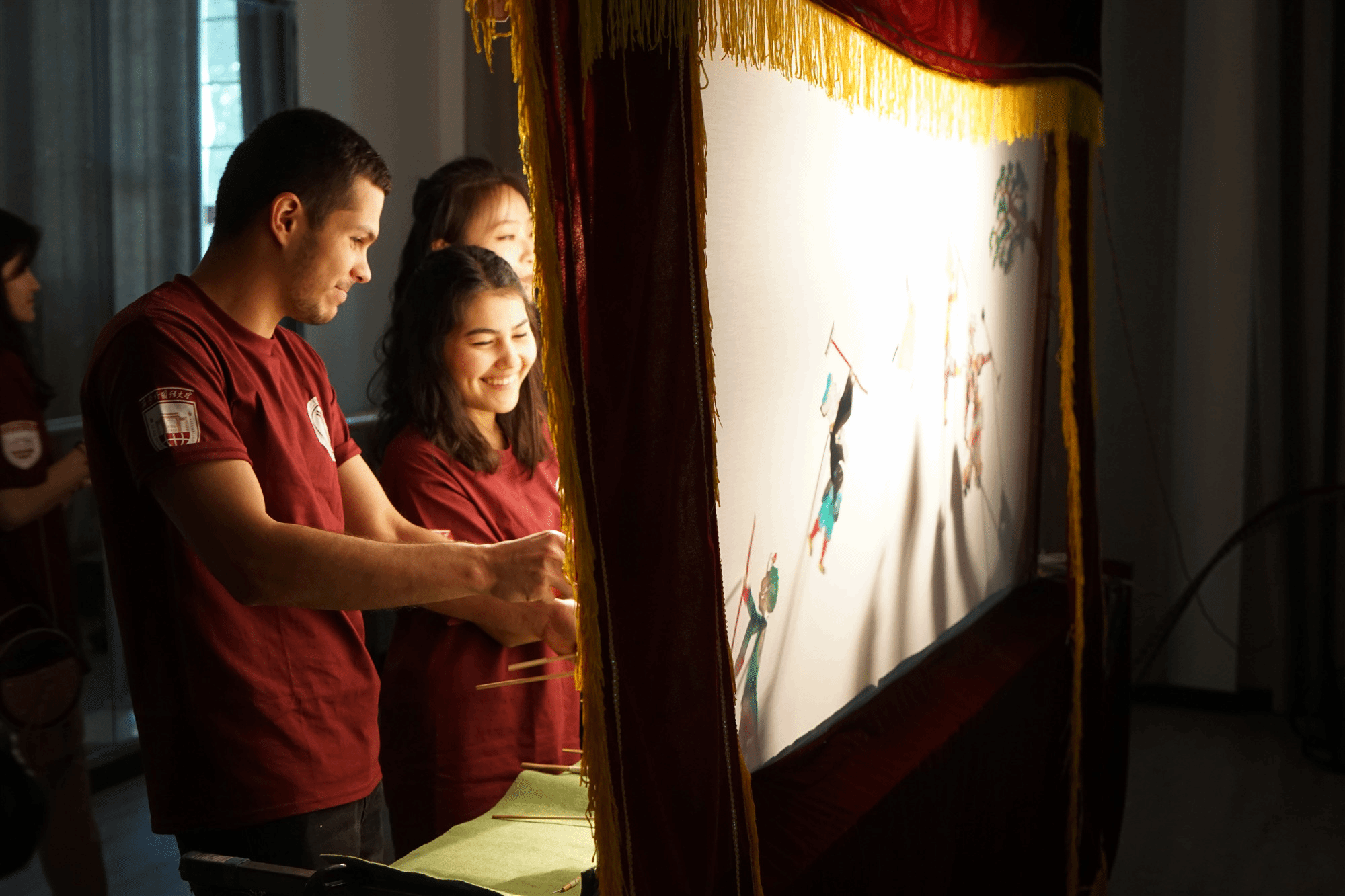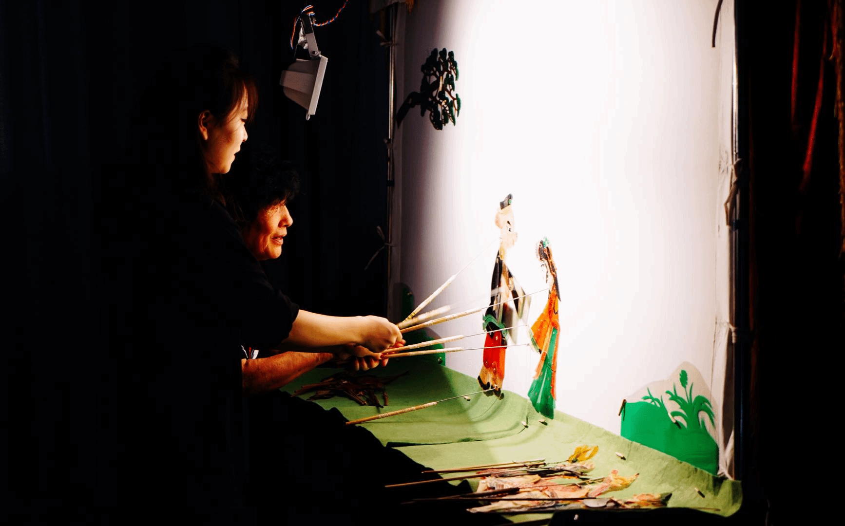 皮影戏 是一种以兽皮或纸板做成的人物剪影以表演故事的民间戏剧,距今己有兩千五百年的历史,是中国民间古老的传统艺术,已入选人类非物质文化遗产名录。表演时,艺人们在白色幕布后面,一边操纵影人,一边用当地流行的曲调讲述故事。