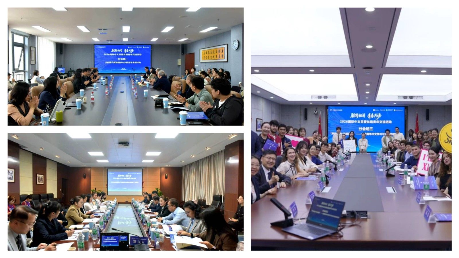 第三分会场“丝路青年中文学习与文化体验圆桌派”以“声动丝路、共绘蓝图”为主题,围绕中文学习故事、跨文化适应、非遗体验对中文学习的促进作用、文化感知与情感联结等议题展开交流。来自省内23所大学的25名留学生结合在陕留学经历,分享了学习中文的有趣故事与对中国文化的真切感悟,表达了对“一带一路”倡议未来发展的美好憧憬。