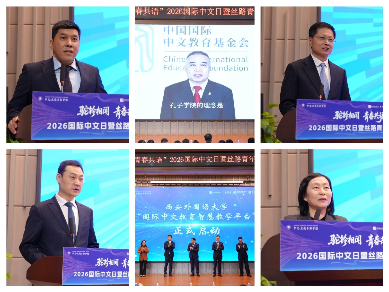 2026年4月20日,正值第17个联合国中文日暨第七个国际中文日,由中国-中亚机制秘书处、教育部中外语言交流合作中心、中国国际中文教育基金会指导,陕西省教育厅主办,我校承办的“驼铃相闻,青春共语”——2026国际中文日暨丝路青年交流活动,在长安校区隆重举行。中国-中亚机制秘书处副秘书长库达伊别尔格诺夫·阿迪列特·巴克特别科维奇、陕西省人民政府外事办公室副主任李安军、共青团陕西省委统战部部长及省青联秘书长潘磊、我校校长吴耀武,以及来自全国30余所高校的专家、教师和中外学生代表共同出席开幕式。开幕式由我校副校长邓滢主持。